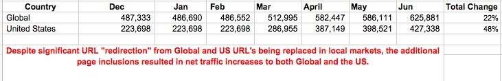 As a result of increased indexing there was no traffic cannibalization with both the global and US site traffic increasing 22% and 48% respectively.